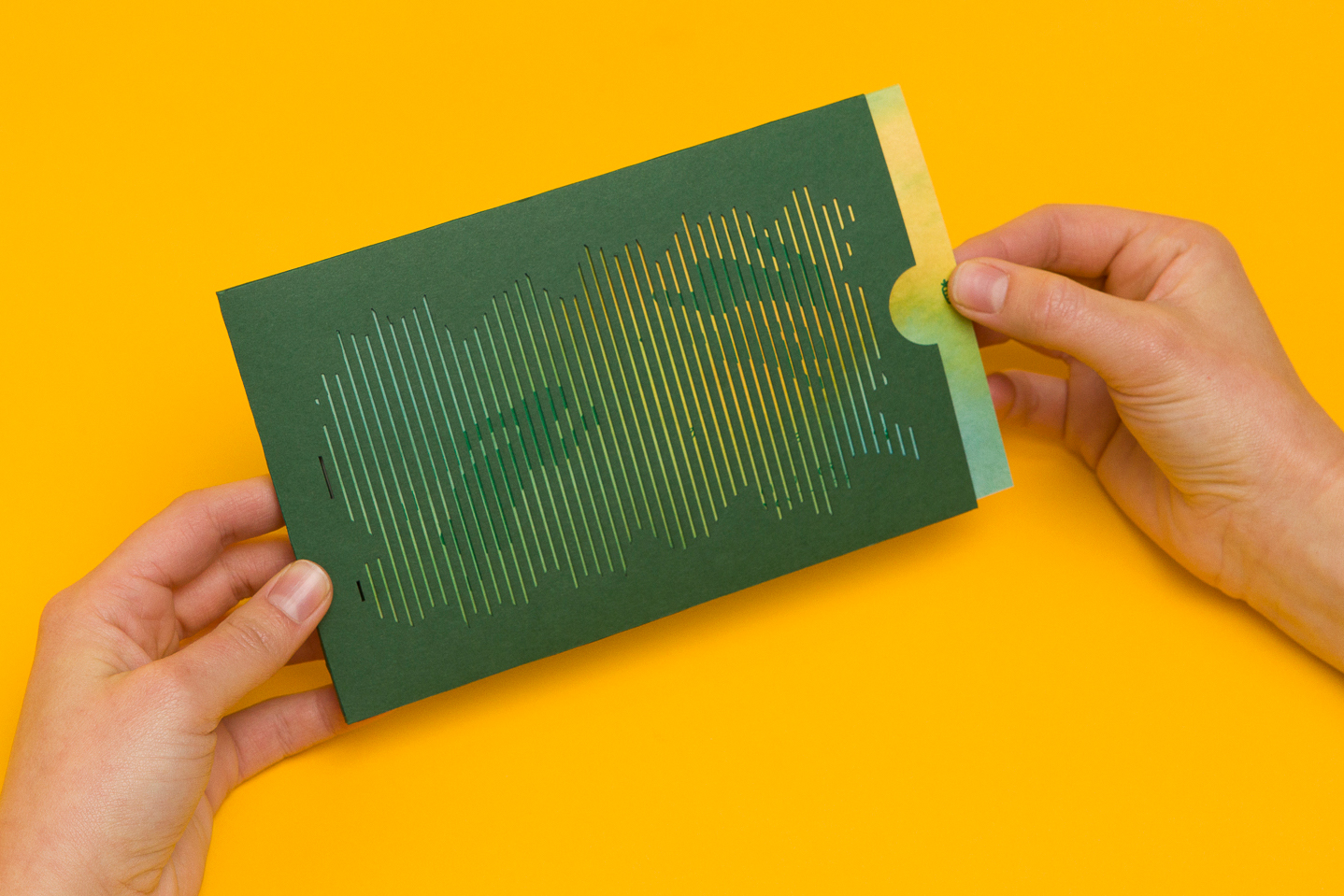 Sleeve – Laser-cut sleeves in Colorplan Forest 270gsm, scored, folded and glued.