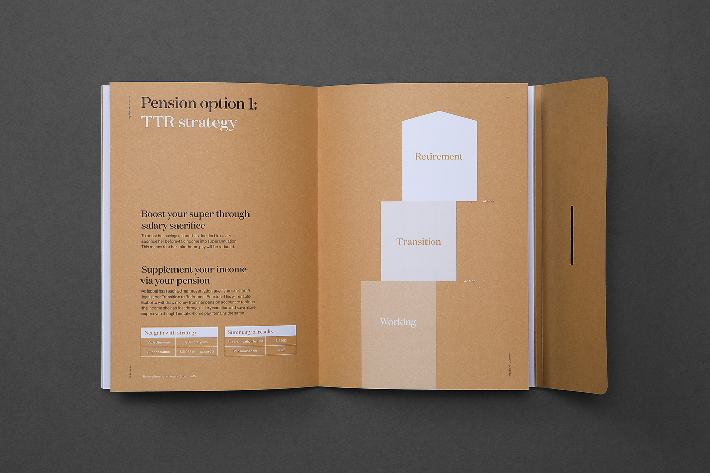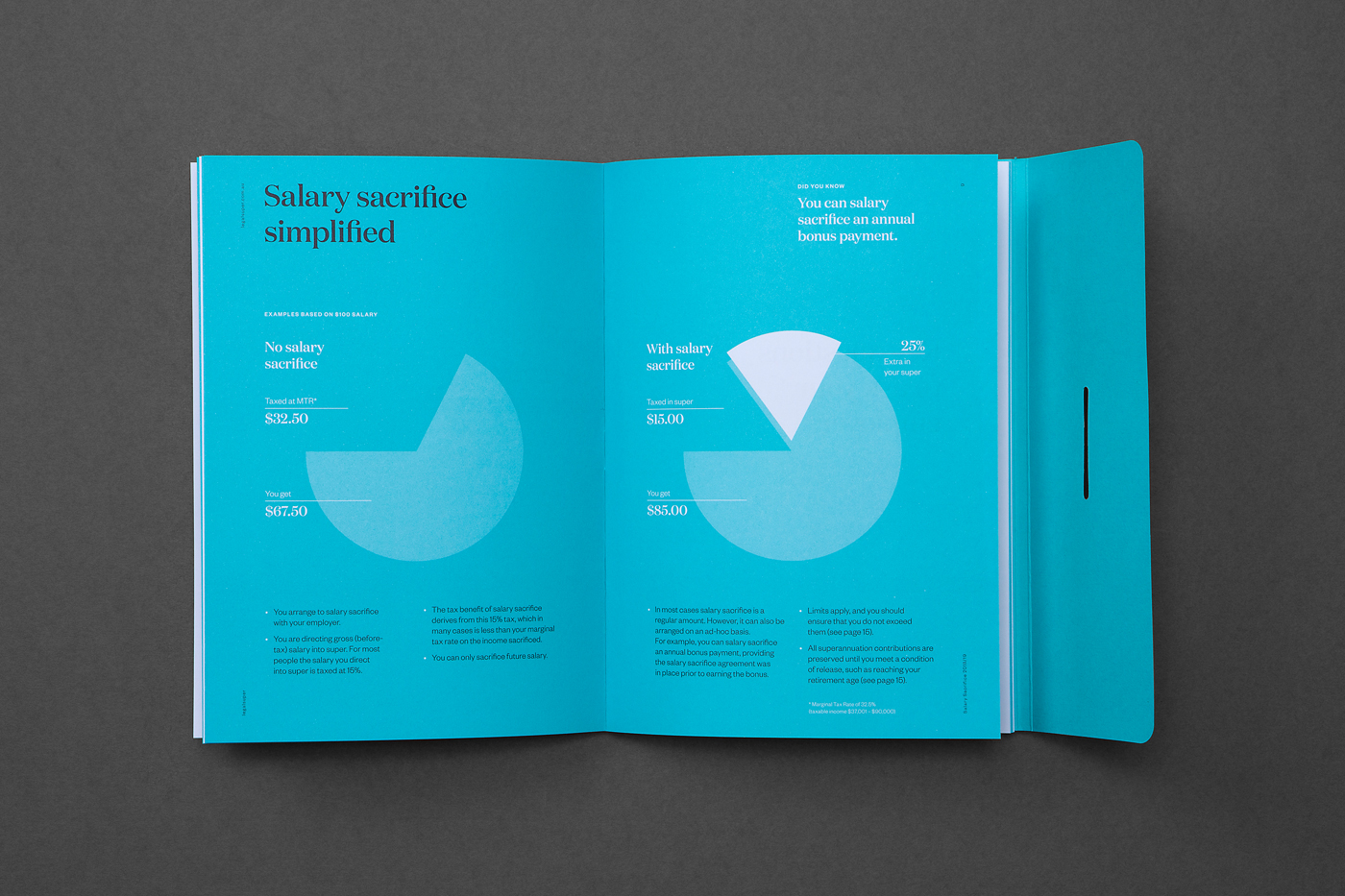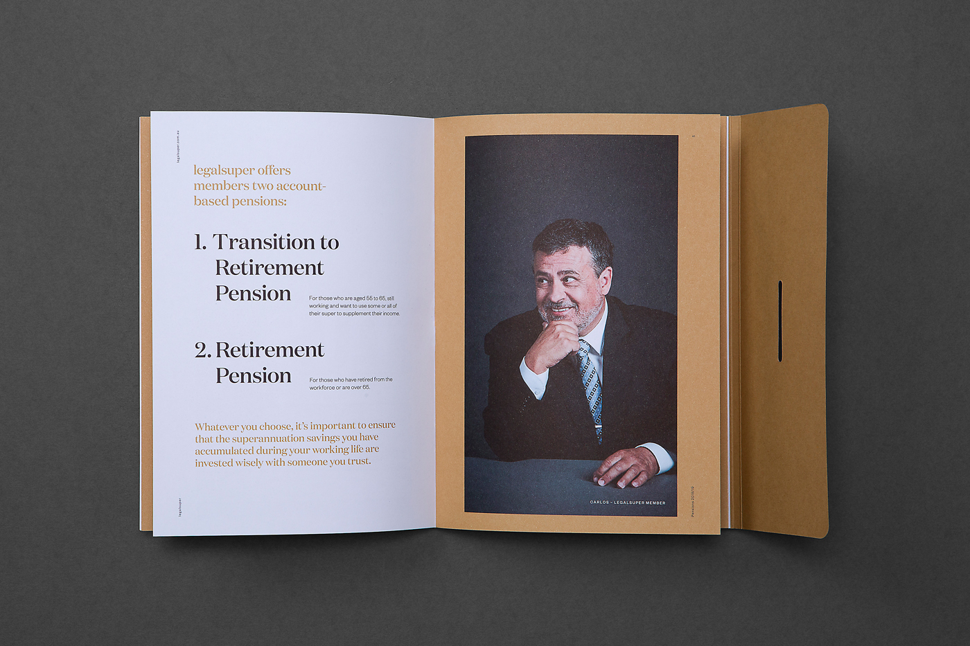 We worked with legalsuper to bring their new brand identity to life through their printed communications. Our object-based design approach looked at the materiality and form of the communication first. We explored paper stocks, sizes and how the cover interacted with the internal pages, and then we moved on to the detail and structure of the content.