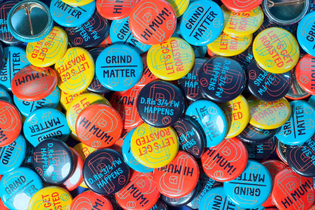 Badges – Digitally printed by Make Badges in multiple variations.