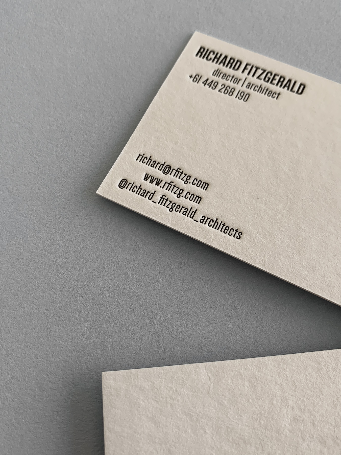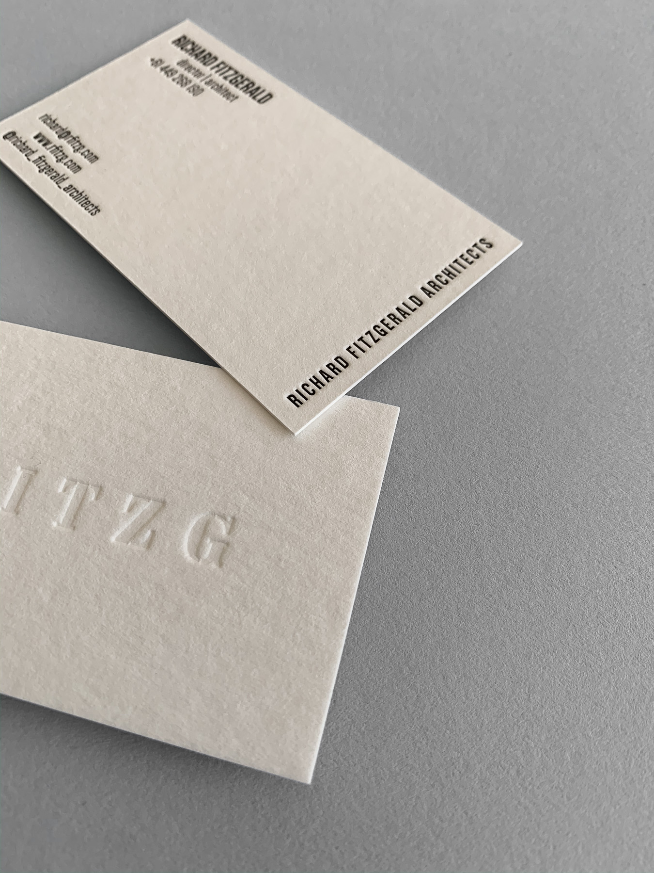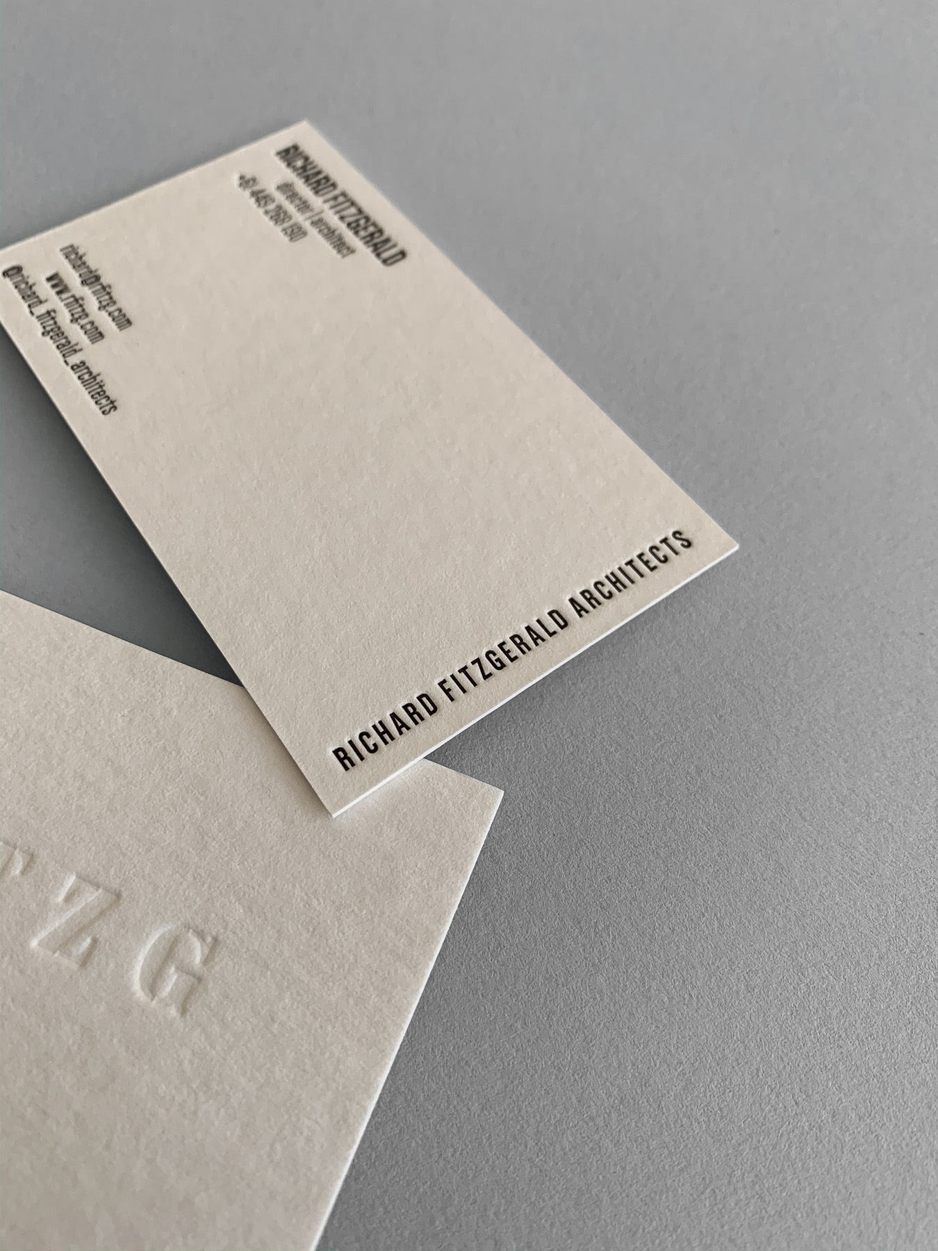 Business Cards – Letterpress printed blind and black on Wild 450gsm.