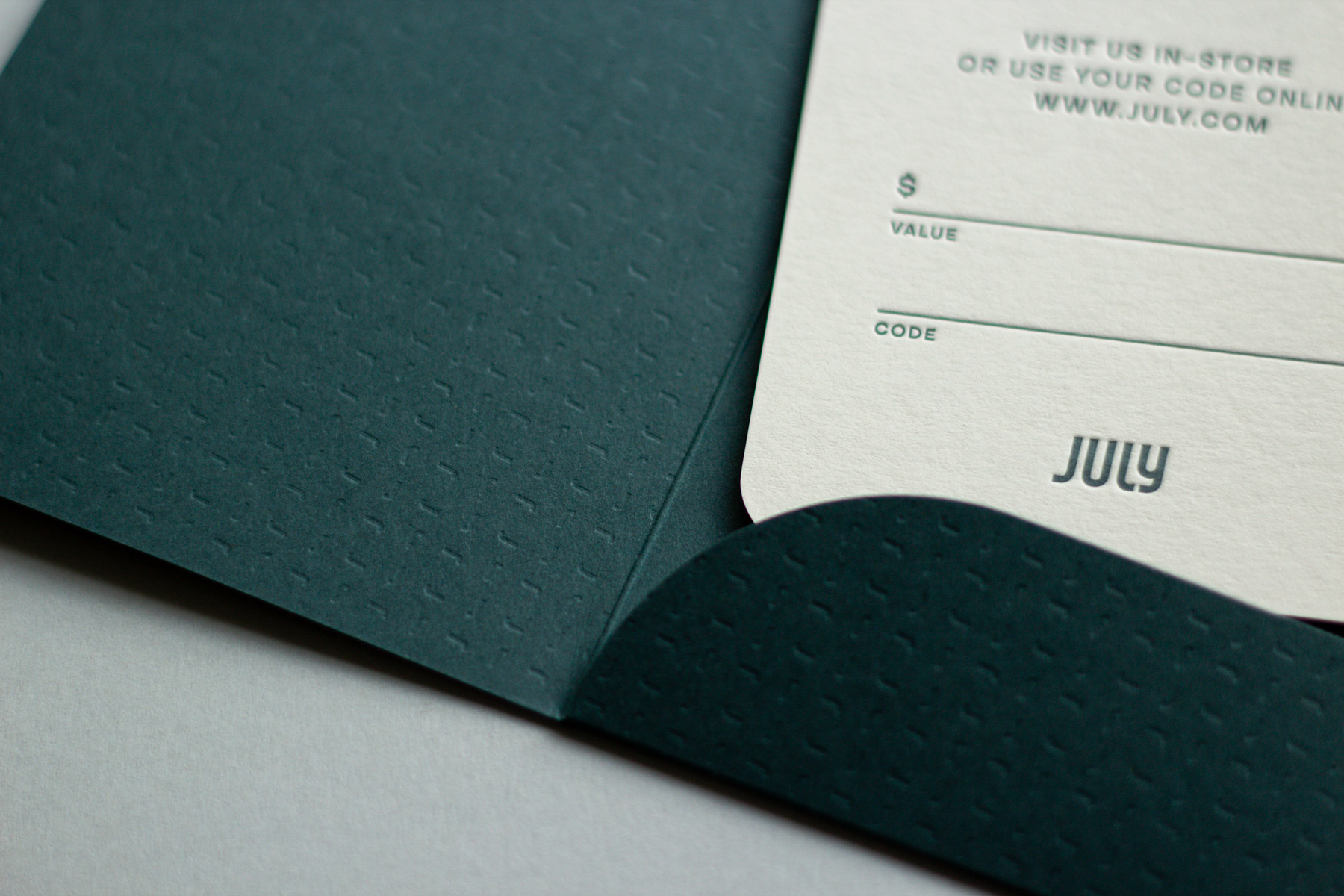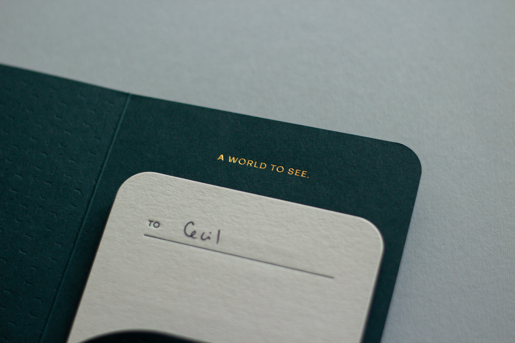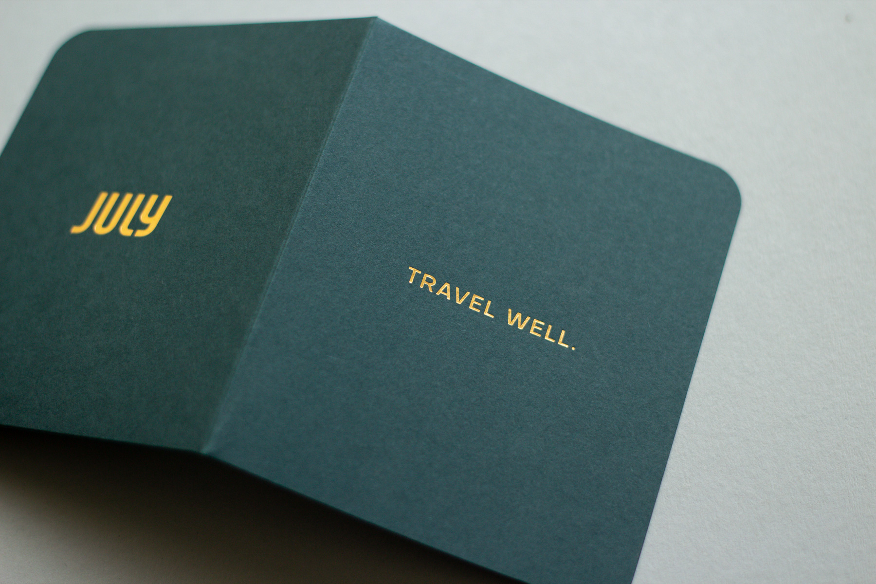 ‘Nothing to lose and a world to see.’ Luxury gift cards in a custom folder for July.