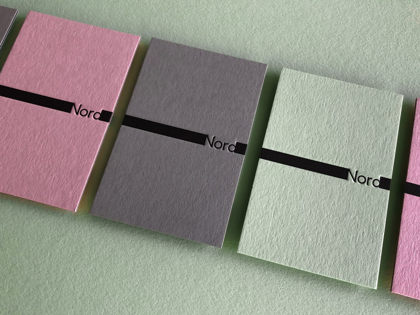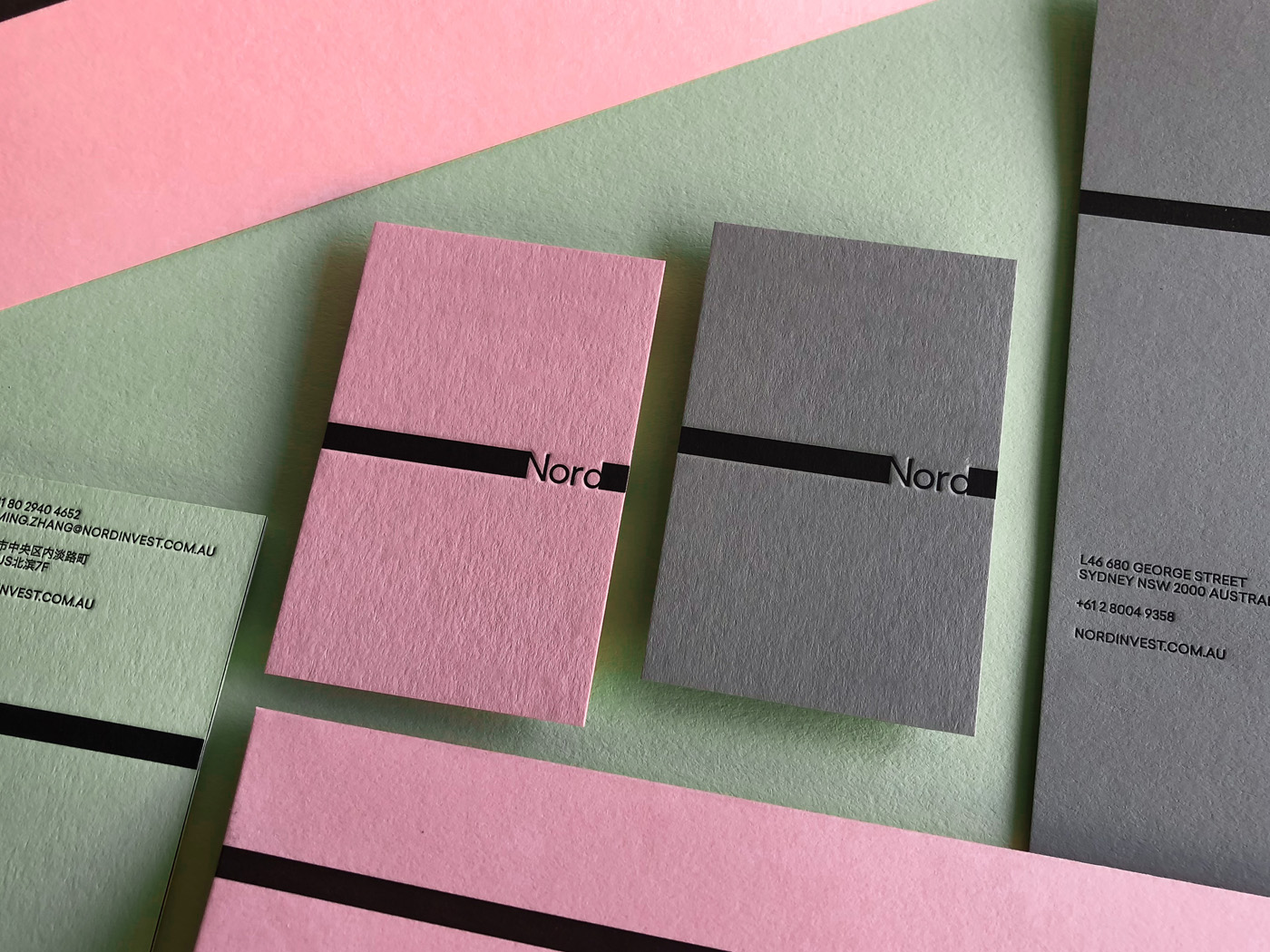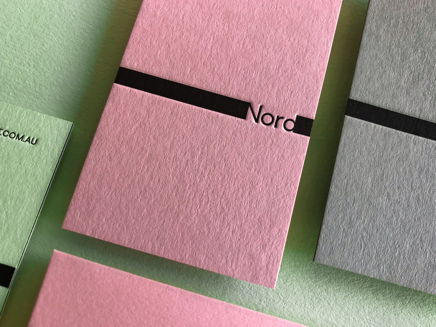 Frost*Business Cards – Letterpress printed in black on Colorplan Cool Blue, Real Grey, Pistachio and Candy Pink 270gsm, triplexed with Ebony Black 350gsm in the middle to make 890gsm.
