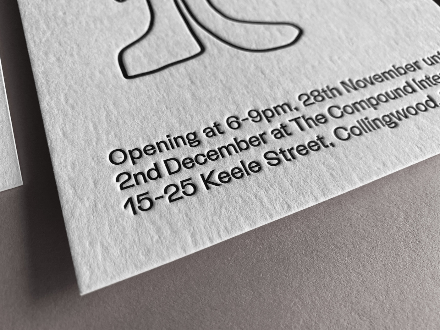 Exhibition Invitation – Letterpress printed on Wild 450gsm (35% cotton) in Pantone Black.